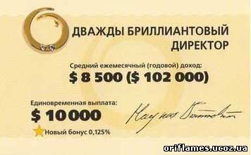 Дополнительные привилегии:- приглашения на семинары ДиректоровТри варианта: - минимум 7500 балов бонуса; - минимум 3000 балов бонуса в персональной группе и одна 21% группа в первом уровне; - две и более 21% группы в первом уровне; _________________________________________________ |