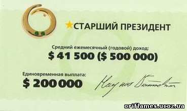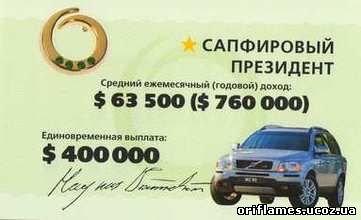 А еще компания рада подарить своим Лидерам драгоценные значки из 18-каратного золота с натуральными камнями, роскошные машины и путешествия бизнес-классом.